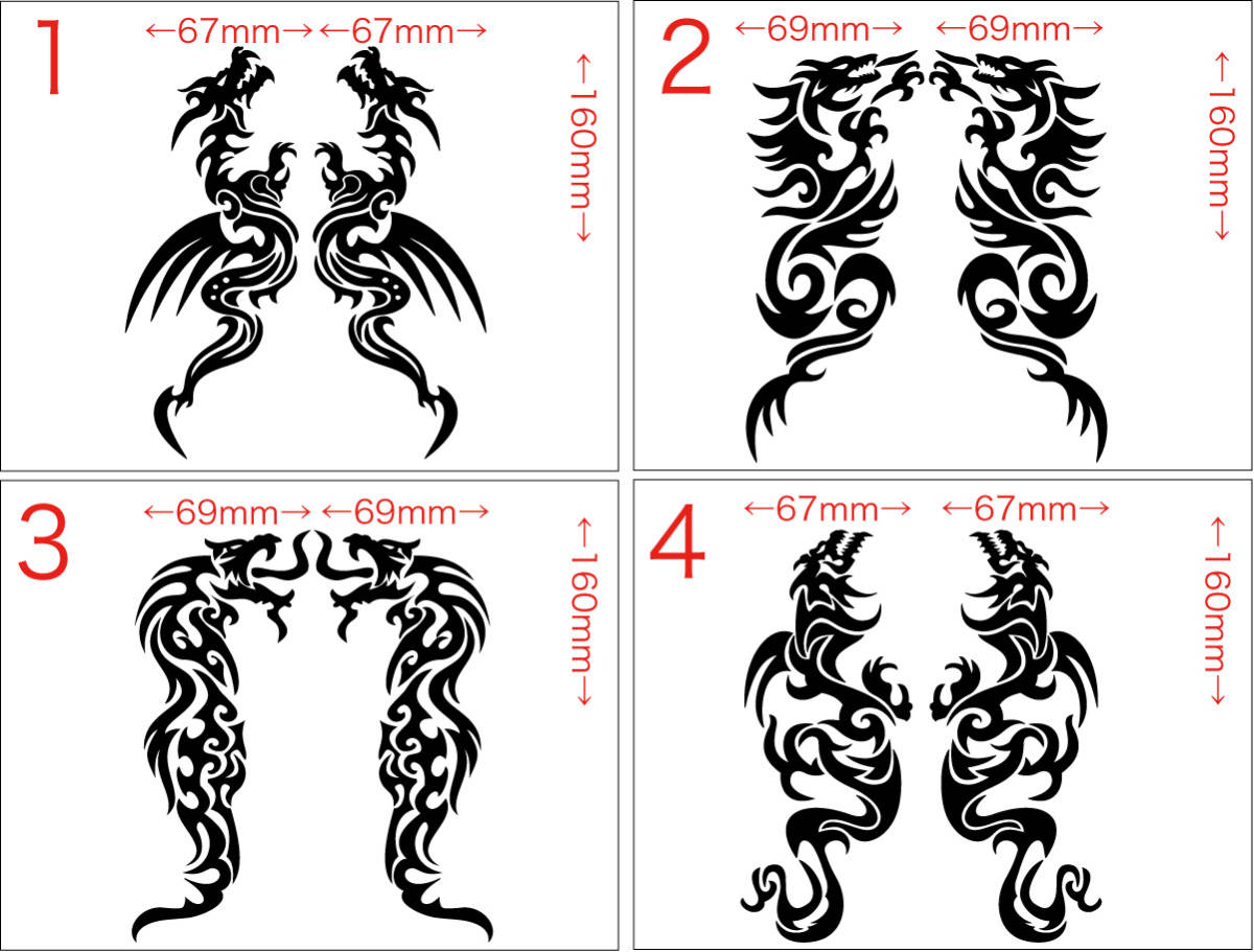 - ドラゴン 龍 トライバル2(左右1セット)・1-8 (8種中1点選択) カッティングステッカー 耐水・耐候 車やバイクのワンポイントやキズ隠しに
