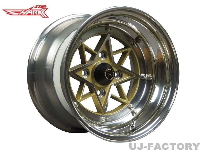 > 【即納!送料無料】復刻版 リアル 3ピースバージョン スターシャーク/ゴールド 14インチ 10.0J(10J × 14)-37 114.3-4H★2本セット