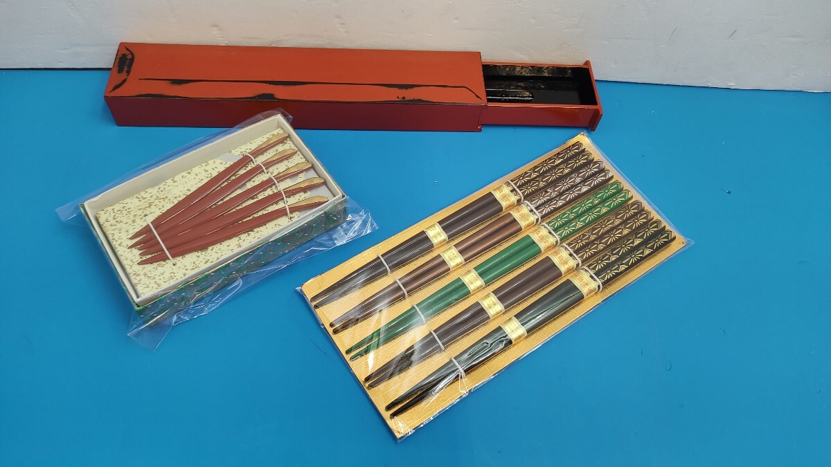 > ★未使用 和食器 3点セット お箸 御楊枝 箸ケース 輪島塗 和風 木製 塗り物 工芸品 日本 おはし カトラリー