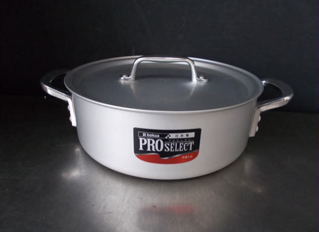 - K-782 HOKUA アルミ製 蓋付浅型鍋27cm プロセレクト 目盛付アルミ外輪鍋 厨房小物中古