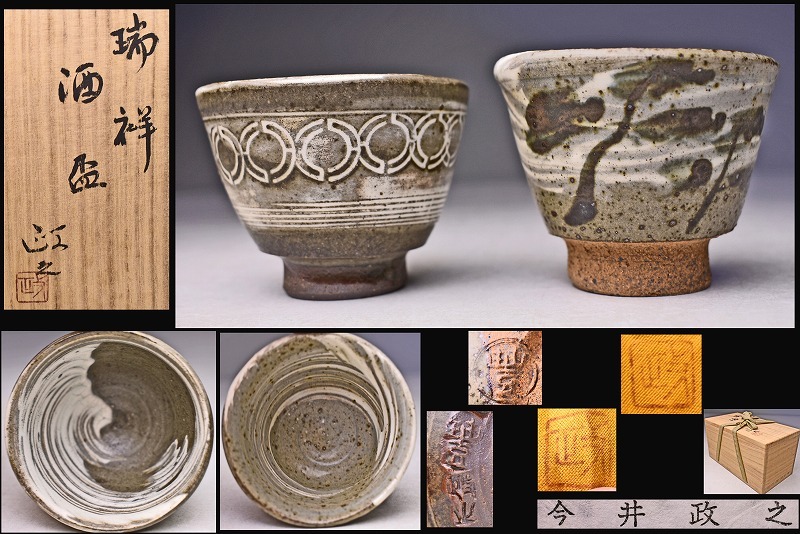- 今井政之 ★ 瑞祥ぐい呑 2客 ★ 共箱共布栞 ★ 松文 ★ 良いぐい呑 ★ 京焼 清水焼 ★ 楠部彌弌 勝尾青龍洞 師事
