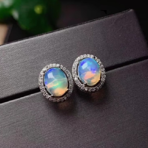 天然オパールピアス、5×7mm、オーストラリア、 925 シルバー、証明書