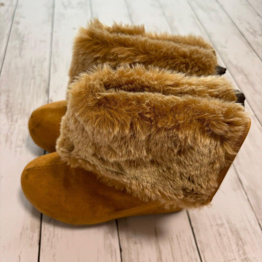 - ショートブーツ【M】スウェード ファー ブラウン 厚底