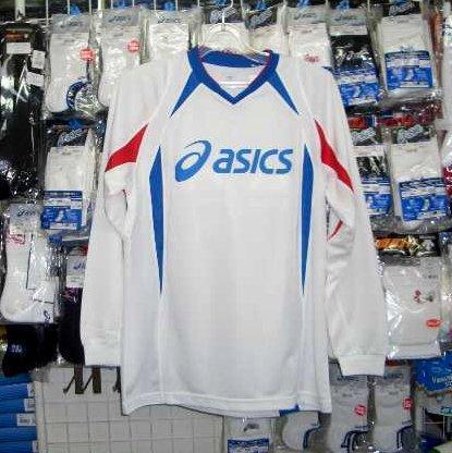 > アシックス XS6034長袖プラクティスシャツ 白×青 ホワイト×ブルー Oサイズ 大きいサイズ asics 新品 レトロ 即決価格/