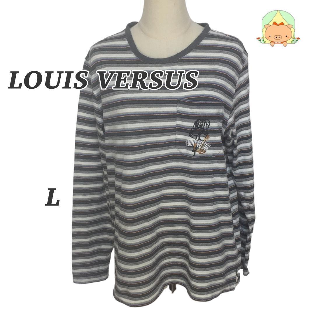 - C0813 ルイ・バーサス ボーダー 犬 刺繍 ストリート ポケット 長袖 カットソー