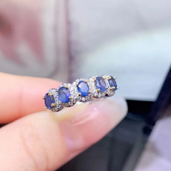 ブルーサファイアリング、3x4mm、合計1.2カラット、証明書