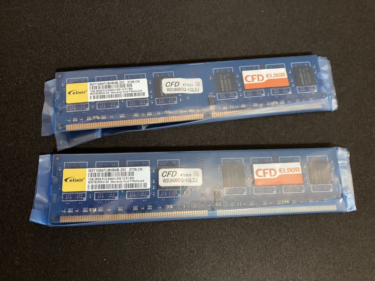 > CFD PC2-6400U 1GBx2枚 M2Y1G64TU8HB4B-25C W2U800CQ-1GLZJ DDR2-800MHz