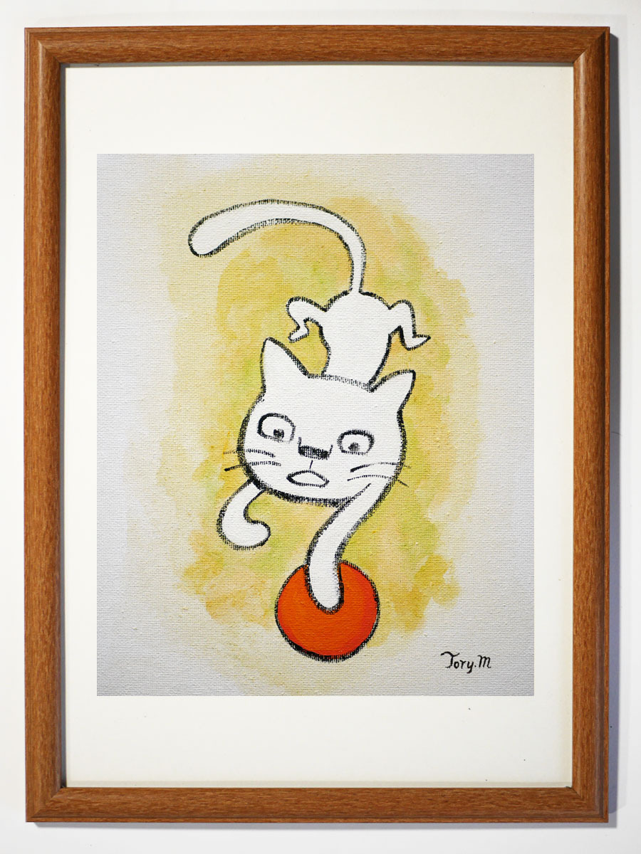 - ★【 肉筆アクリル画】Torymanz(青木青一郎)真作 『白猫/No.006』F3サイズ ※猫の絵