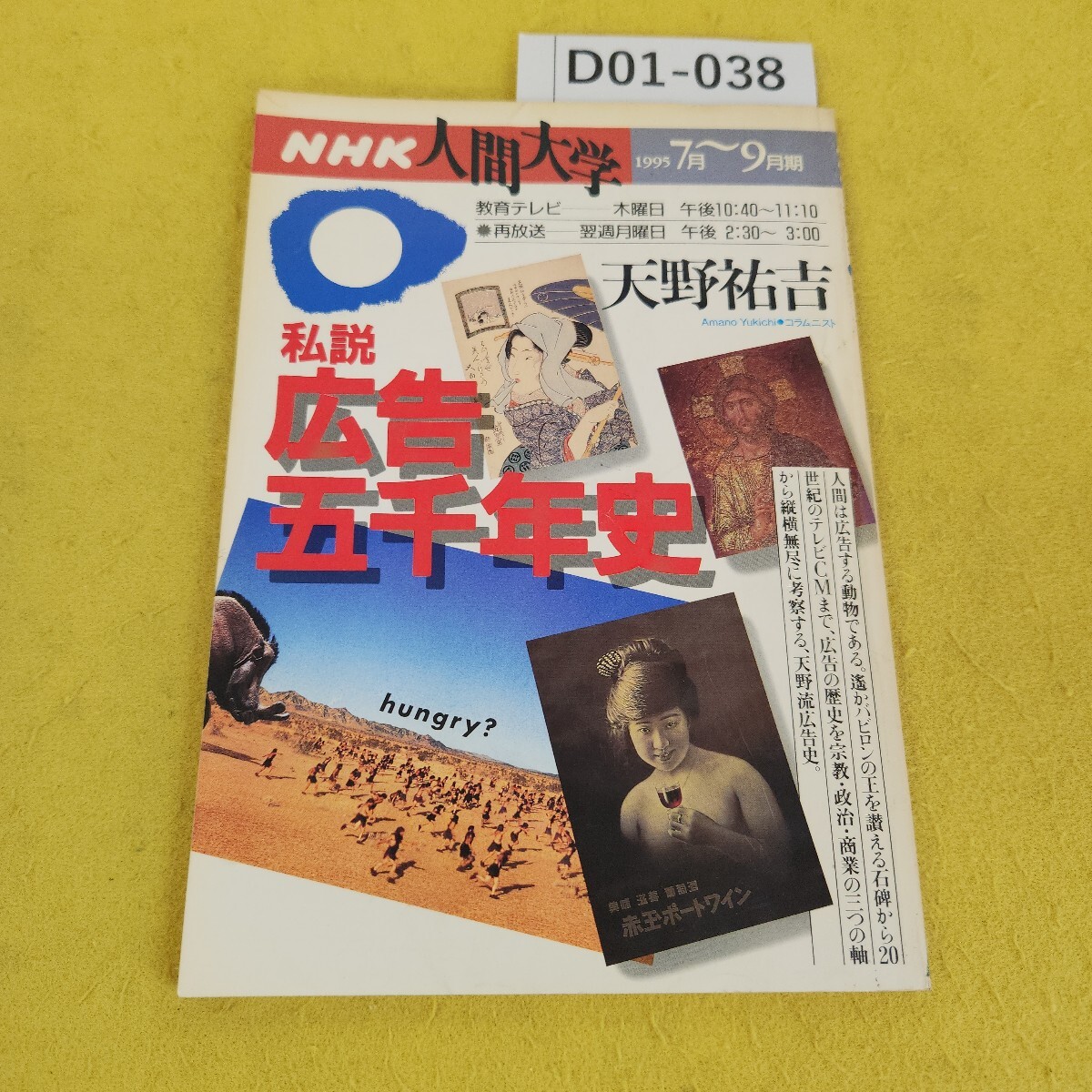 - D01-039 私説 広告五千年史 天野祐吉 NHK人間大学 1995年7月~9月期 日本放送出版協会 日焼け傷汚れ多数あり。