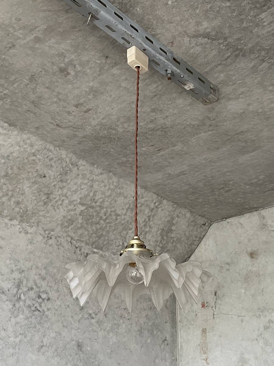 > 11. フランスアンティーク 古民家 ミルクガラスシェードペンダントランプ ホワイト フリル 吊り下げ シーリングライト 店舗 美容室