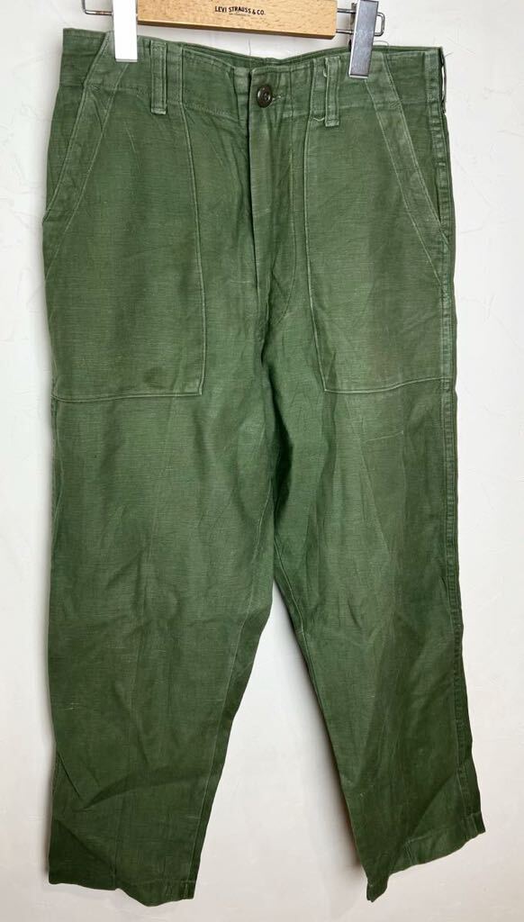 - 60s' U.S.ARMY OG-107 COTTON.SATEENベイカーパンツ BLUE BELL INC DSA100-69-C-0432米軍 実寸W30×29US SCOVILL ZIP 希少 ヴィンテージ