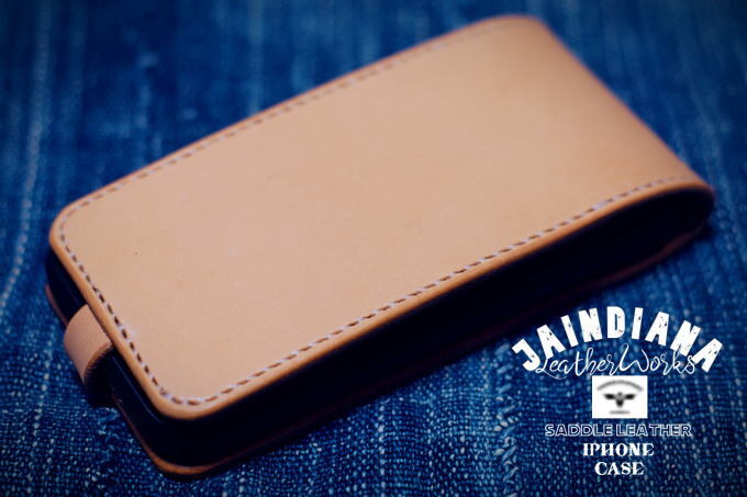 > iPhone16ケース 手縫い サドルレザー ナチュラル (iPhone16pro,16proMax,16Plus仕様での製作も可)