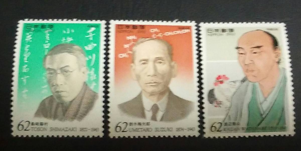 - 1993年・記念切手-文化人(第2シリーズ)第2集・3種類