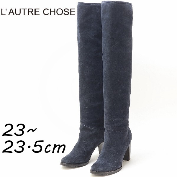 - ◆D'Archive by L'Autre Chose ロートレショーズ 裏地ボア スエード ヒール ロング ブーツ 紺 ネイビー 36 1/2