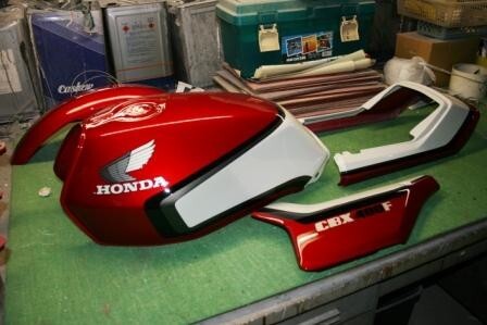 ※1枚目の写真は商品ではありません。見本になります※2、3枚目の写真が商品になります ■CBX2型赤/白 図面つき純正色塗料セット内容※ベースのパールホワイト、キャンディーレッドですがこちらは 2コートになります下塗りのホワイトを塗装して、上塗りのパールを塗装してくださいキャンディーレッドも下塗のシルバーを塗装して上にカラークリアーレッドを塗装してください。両方とも上塗り、下塗の塗料が付属しています●塗料(主剤) ・パールホワイト ・上塗り225g ・下塗り450g・キャンディレッド ・上塗り450g ・下塗り225g・ラインのブラック 225g・ラインのガンメタ 225g●硬化剤 240g●薄め液 2リットル●コシ紙●計量ポリカップ●塗装マニュアル●図面が付きますこちらはウレタン塗料になります。また、塗装マニュアルと図面が付いていますのでこちらをご参考ください※量に関してですが、こちらの量で外装1式塗装して多少余るくらいです失敗分も考えて多めにお見積もりしております※クリアーやサフェサーは別売りになります※ロゴのウイングマークは付属しません※こちらのウレタン塗料はスプレーガンとコンプレッサーが必要です