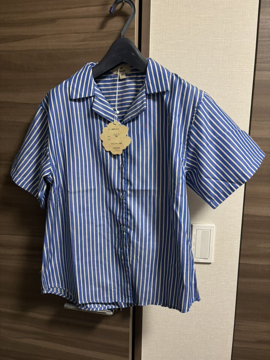 - 新品未使用タグ付き 半袖シャツ Mサイズ レディース ストライプ ゆったりめ 即決あり