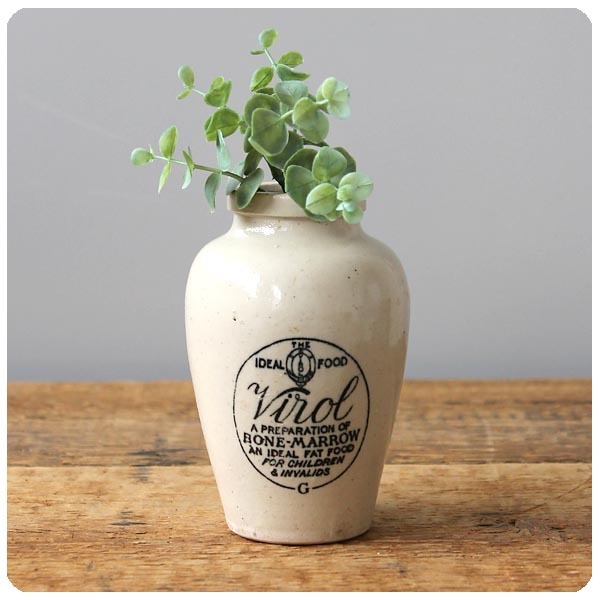 - イギリス アンティーク ヴァイロールボトル Virol陶器ボトル ヴィロール フラワーベース P-788