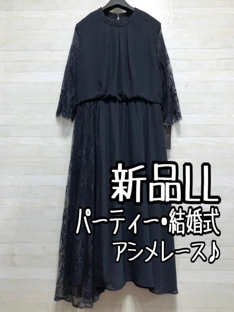 - 新品☆LL♪紺系♪アシメデザイン上品レース♪パーティドレス☆A205