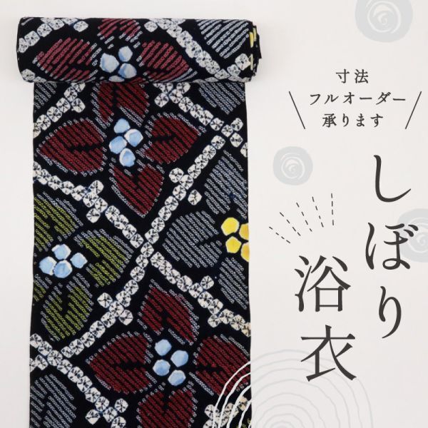 - 【反物】 浴衣 『手しぼり』 花菱繋ぎ 濃紺 木綿 夏着物 お仕立て可 反24-222