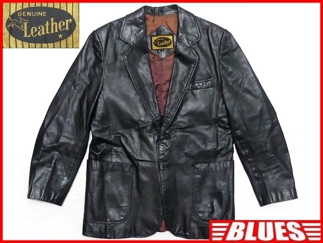 > 即決★GENUINE Leather★メンズL レザーテーラードジャケット ジェニュインレザー 黒 ブラック 本革 スーツ 本皮 ビジネスジャケット 背広