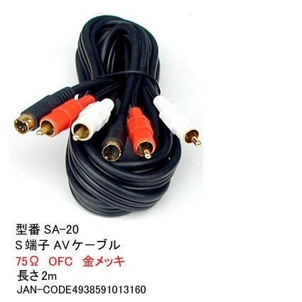 - 【SA-20】S端子AVケーブル S端子x1/RCAx2(赤・白) 2m バルク発送(袋無し)