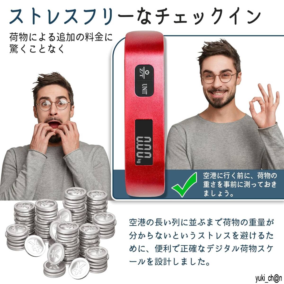 - デジタルはかり 旅行はかり レッド 旅行 荷物 ラゲッジスケール 50kg デジタル 吊りはかり 軽量 トラベル用品 飛行機 海外旅行 登山 釣り