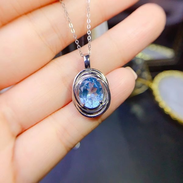女性のための天然トパーズネックレス、シルバー925、証明書