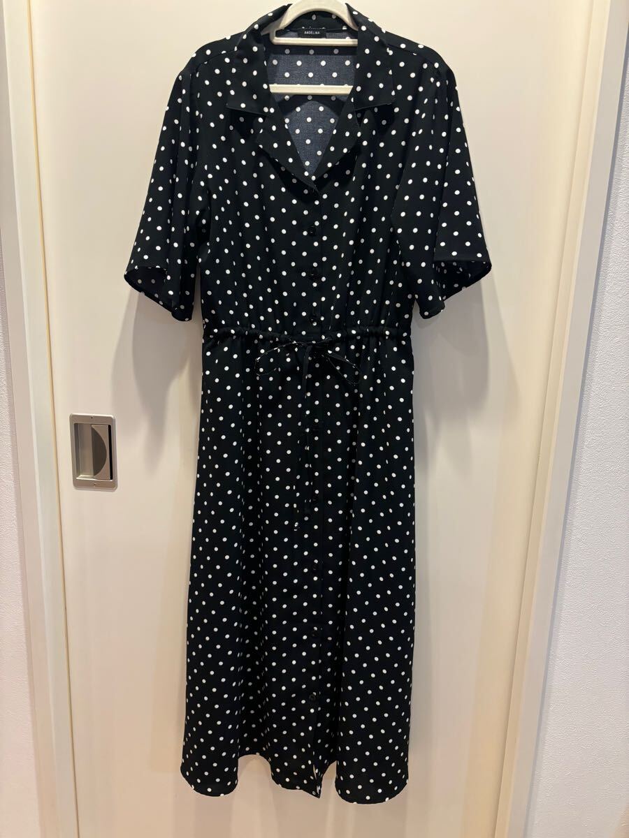 - 送料無料!美品!ANGELINA 水玉ワンピース 黒X白 ロングワンピース