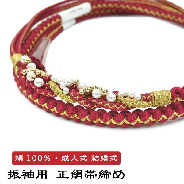 - 振袖用 正絹 飾り 帯締め 赤 濃い赤色 oj-324 手組み紐 帯締 帯〆 組みひも 振袖 成人式 パール メール便発送