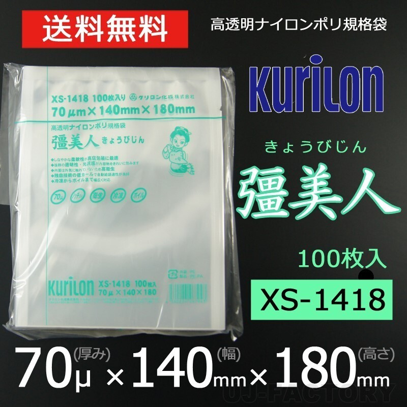 > 【即納!送料無料】彊美人 70ミクロン XS-1418 ナイロンポリ袋/真空袋 (厚み 70μ×幅 140×高さ 180mm)【100枚】★五層構造・三方規格袋