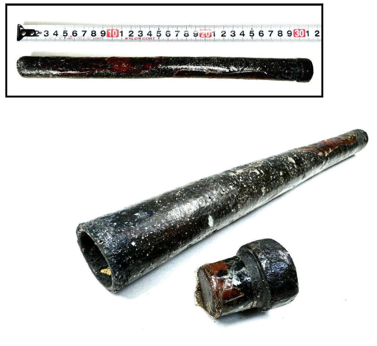 - 【送料無料】時代物 木製黒赤漆器 細密青貝螺鈿細工花香筒 唐物斑竹 美術 骨董品 香道具 (旧家蔵出し) WWWT068