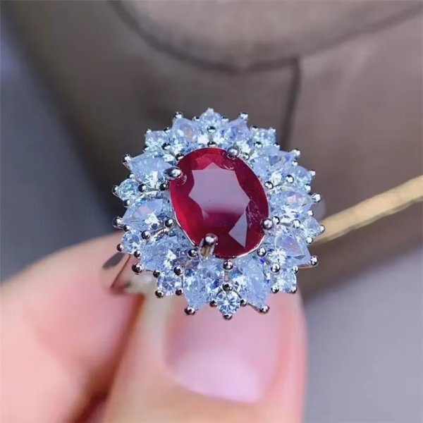 《証明書付き》婚約のための天然ルビーリング、シルバー925