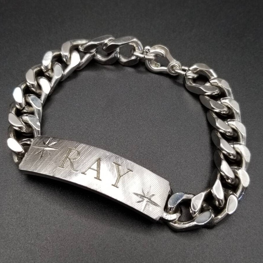 > KALBE社製 IDタグ 長方形プレート 喜平チェーン ヴィンテージ ブレスレット シルバープレート 重厚感 ネーム彫金 Ray Y19-P