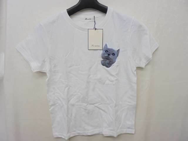 > 【KCM】sta-575★未使用品★【Le mien/ルミアン】 レディース 半袖Tシャツ ポケット 猫刺繍 ホワイト サイズ 38 綿100%