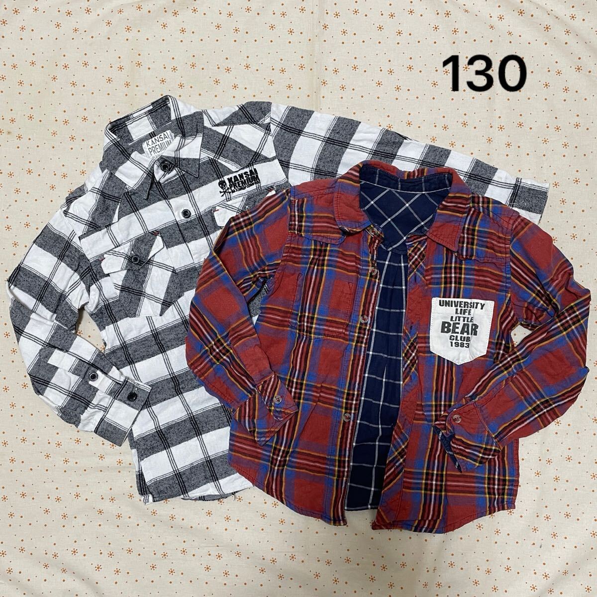 > 送料無料! おまとめ 長袖シャツ 2枚セット ☆ 130 通学着 男の子 チェック 黒 赤