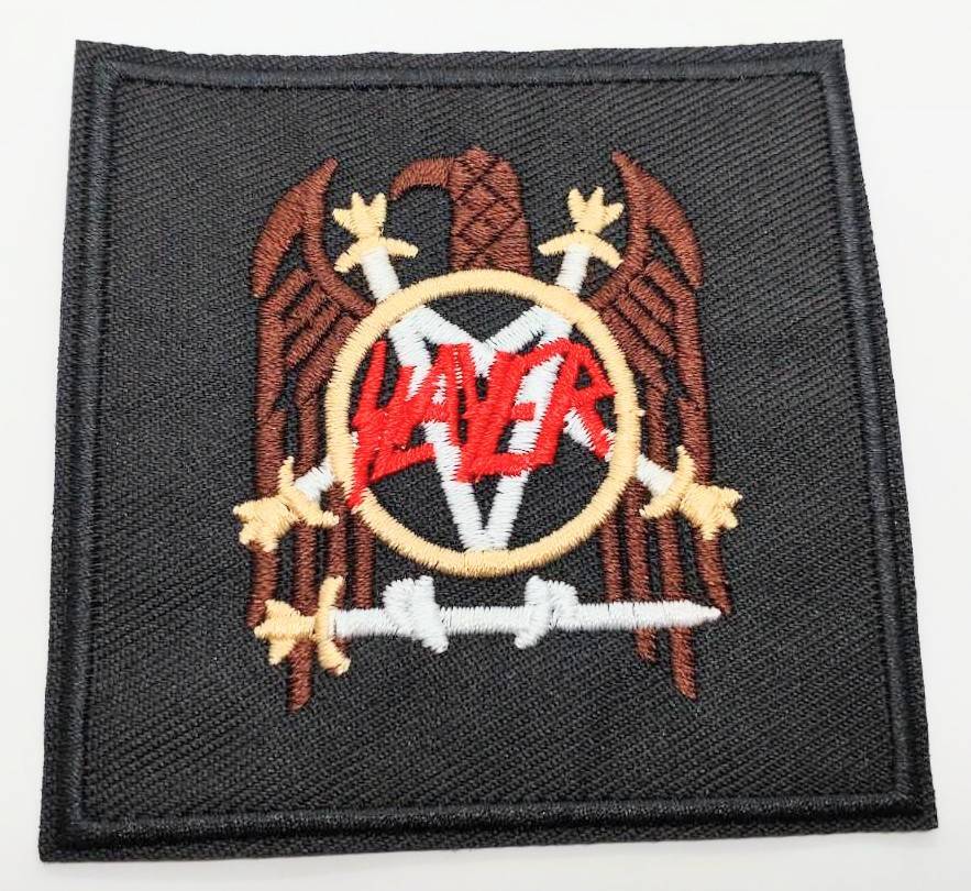 - 送料無料 スレイヤー スクエア ロックバンド ワッペン アイロン パッチ 刺繍 アップリケ のり付き スマアク