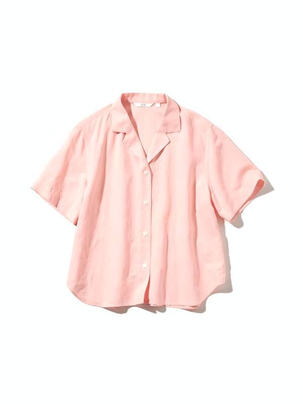 - ユニクロ リネンブレンド オープンカラーシャツ ピンク Lサイズ WOMEN