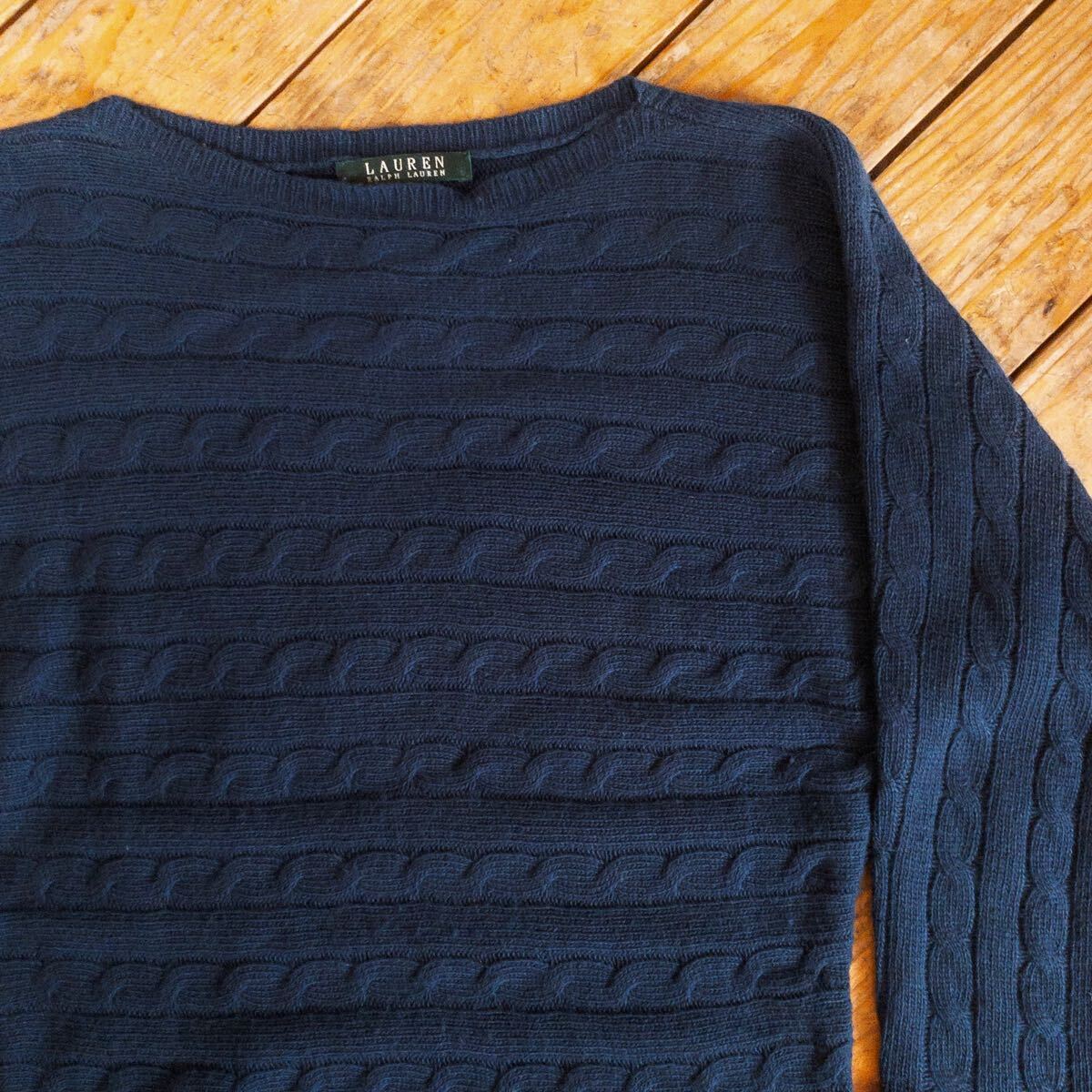 > USA古着 ラルフローレン Ralph Lauren ニットセーター レディース Sサイズ ニット ケーブル編み ネイビー 秋物 春物 カジュアル S0862