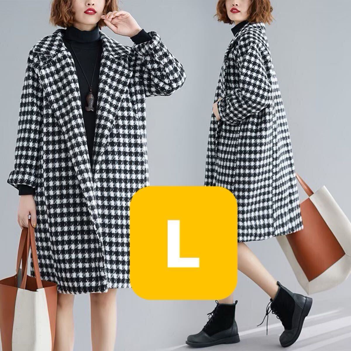 - チェスターコート グレンチェック コート ハーフコート チェック トレンド ストリート セレブ 人気 黒 白 チェック L