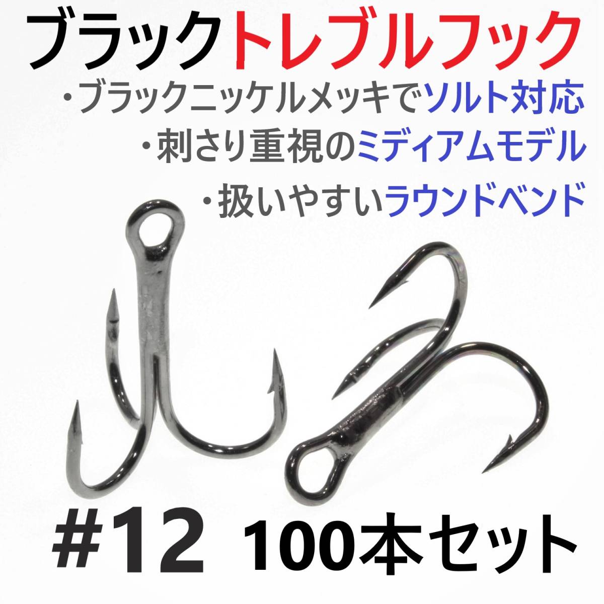 - 【送料無料】ブラックトレブルフック #12 100本セット トリプル ルアーフック ソルト対応 釣り針