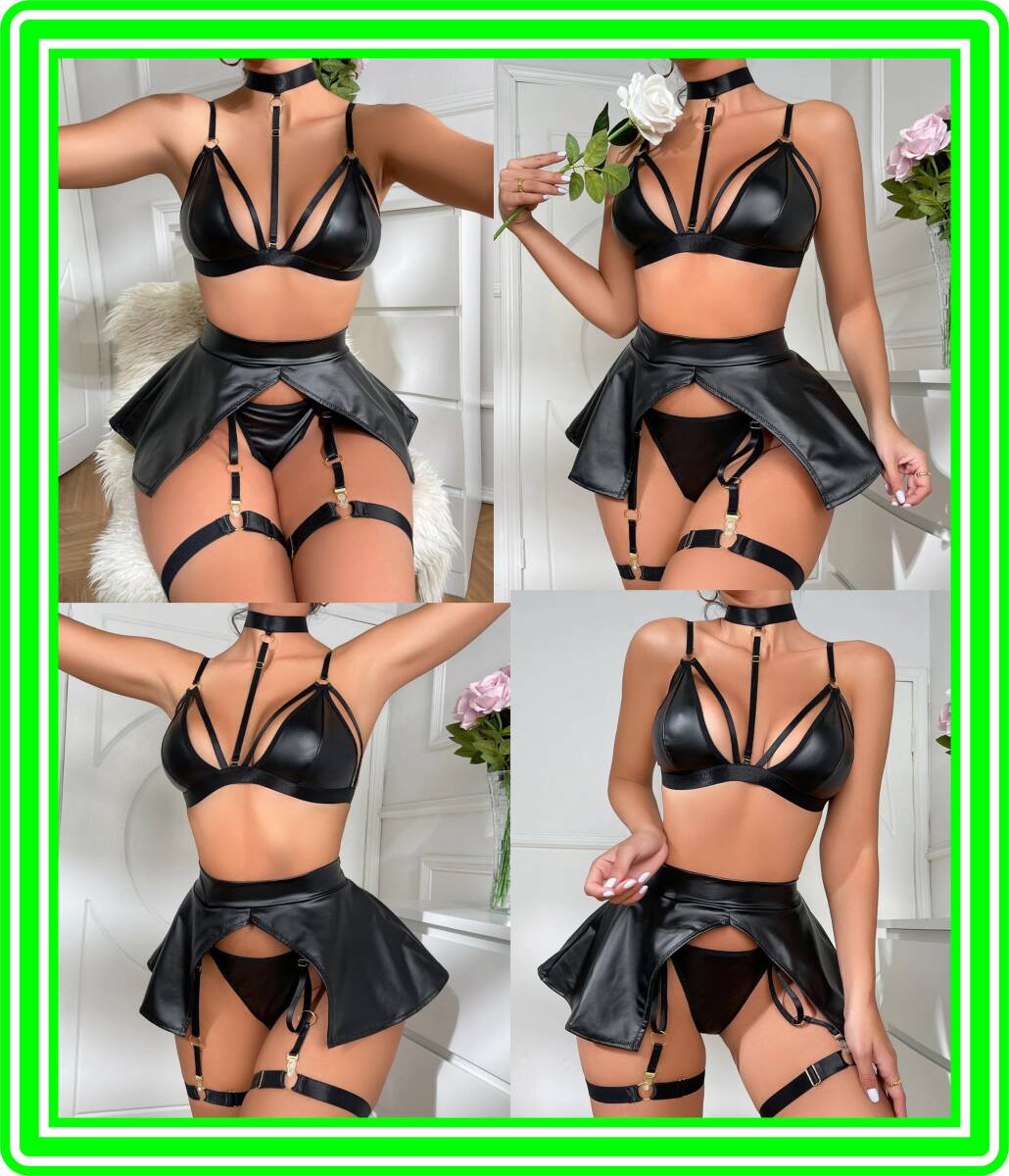 - ★超素敵★大人可愛い★フェイクレザー★スカートガーターデザイン★コスチュームセット★チャーミング★柔らか素材★キュート★MA63