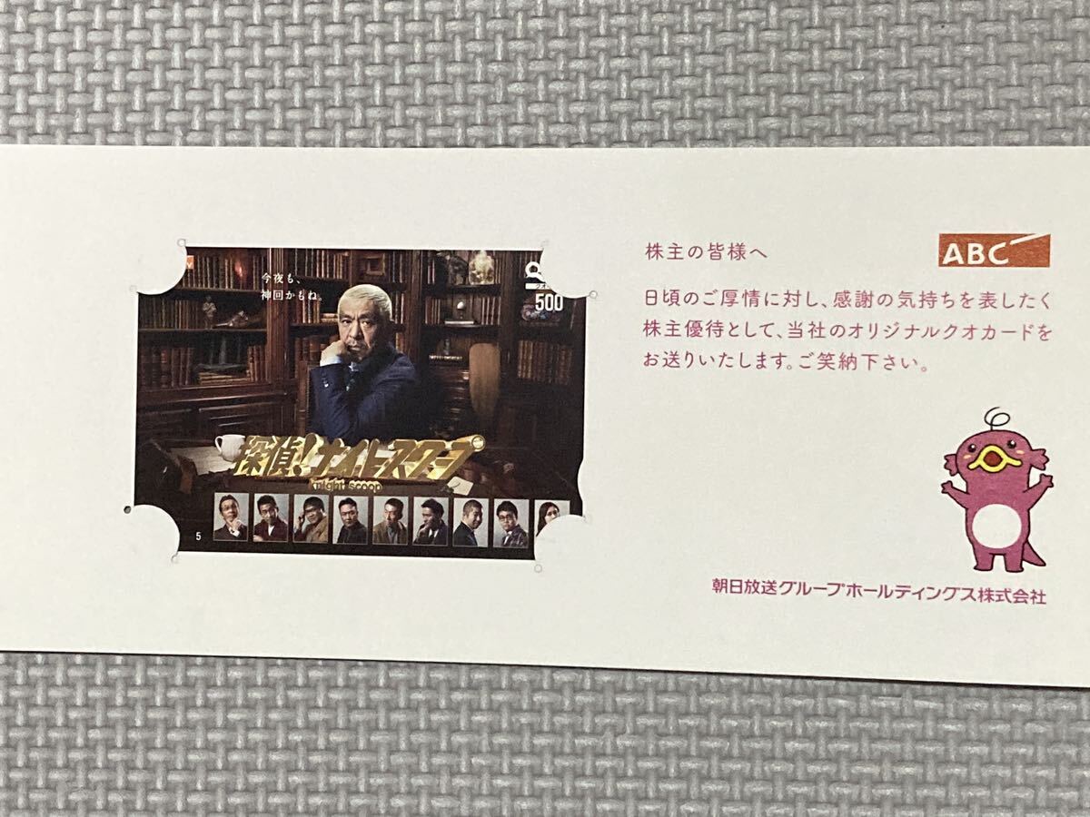 - 株主優待 朝日放送グループホールディングス クオカード 500円分 探偵ナイトスクープ 松本人志