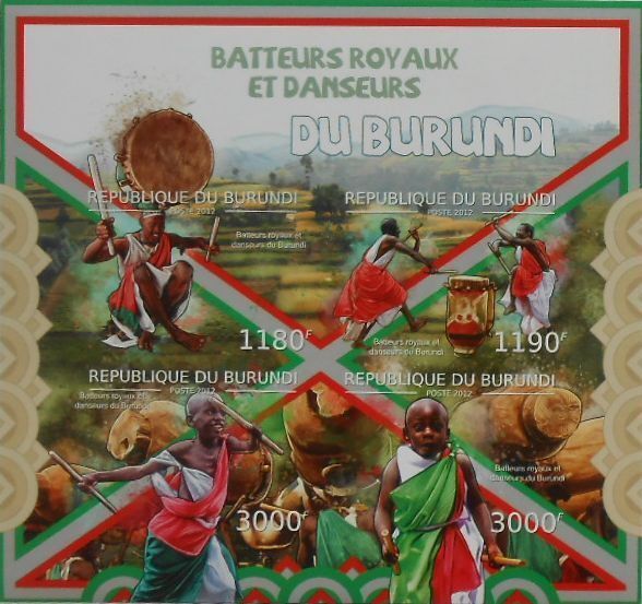 - ブルンジ切手『伝統文化』4枚シート 無目打 2012
