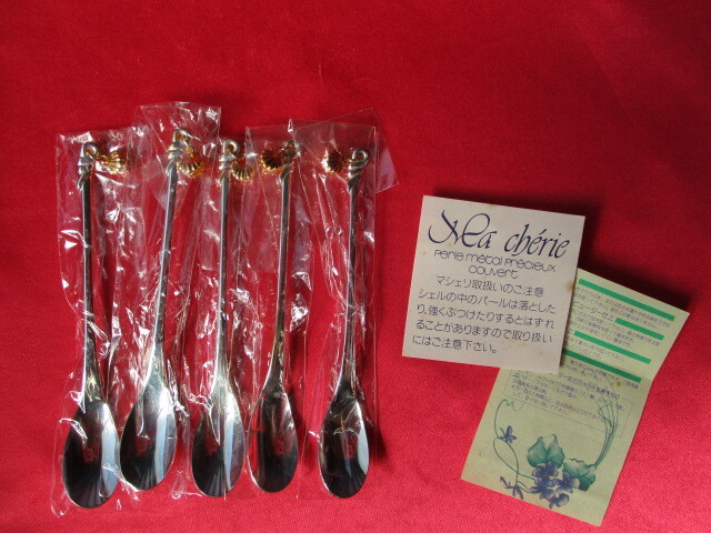 - 真珠貝 パール付 コーヒー スプーン 5本セット マシェリ TAKAKIN 未使用品