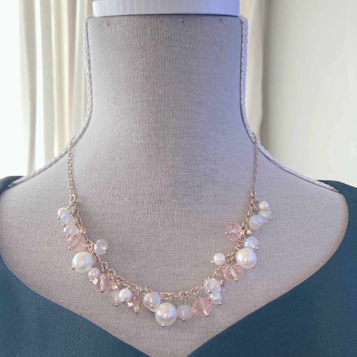 > ネックレス ショート ゴールド ピンク パール ビジュー チャーム 大人かわいい 美品☆Vintage jewelry accessories R0057