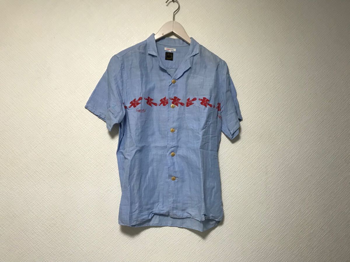 > 本物サニースポーツSUNNYSPORTSアンドセルANDCELコットンリネン麻半袖シャツメンズサーフアメカジモードゴルフドレス青ブルー38M日本製