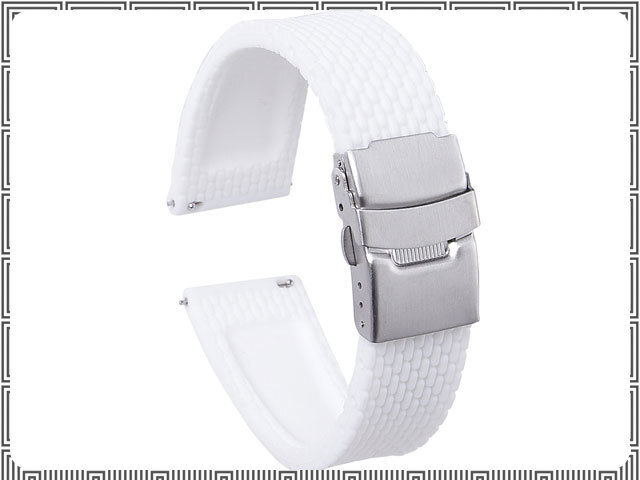 - 新品 時計ベルト 時計バンド 22mm シリコン ホワイト バネ棒付 メッシュパターン 交換ベルト [2074:madi]