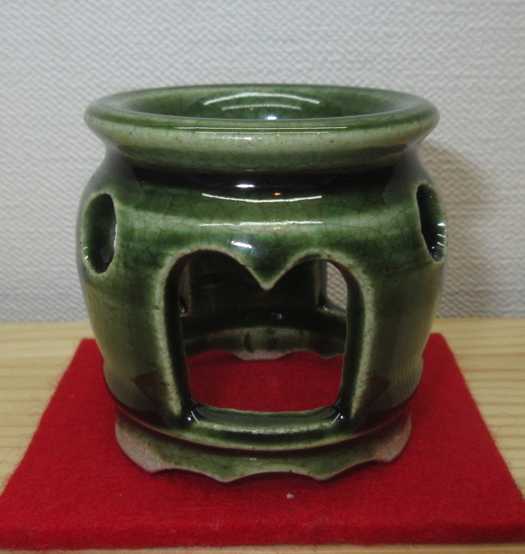 - 【逢絢亭・新品】茶道具 蓋置 美濃焼 織部 夜学蓋置 松本鉄山 共箱入り