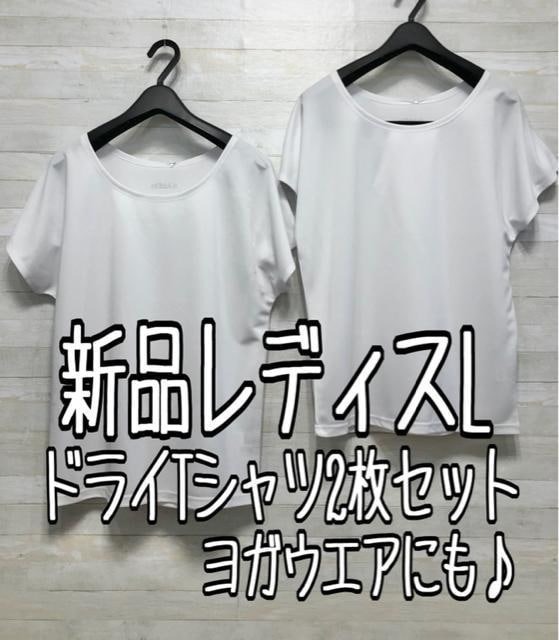 > 新品☆レデイスL白系♪AddElm×ATSUGI♪ドライTシャツ2枚セット♪ヨガウエアにも☆x727