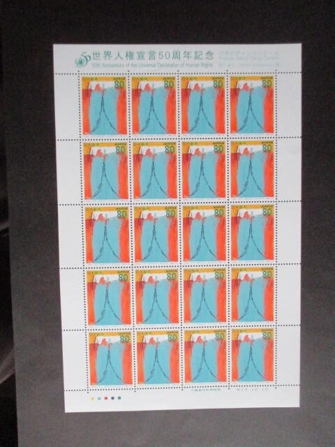 - コレクター出品 世界人権宣言50周年記念 記念切手★シート発売日1998.12.10 【11-102】